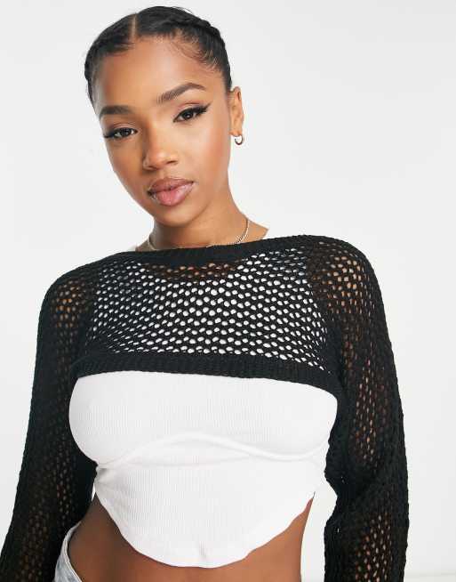 Stradivarius 2 in 1 fishnet knitted jumper in contrast black ASOS