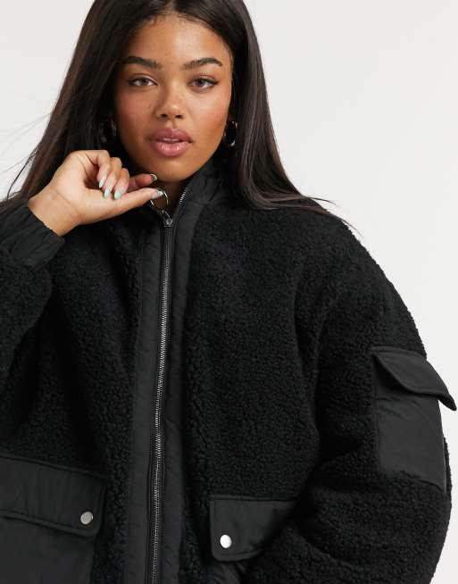 ASOS DESIGN fleece patched bomber jacket in black ASOS
