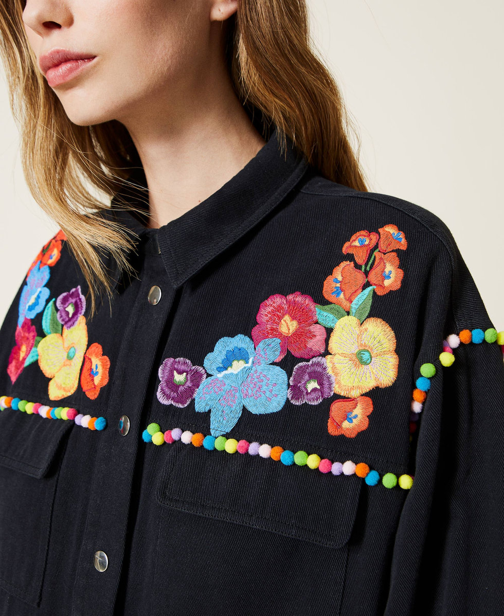 Bull jacket with multicolour flowers Woman Black TWINSET Milano