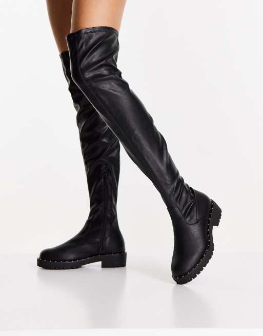 ASOS DESIGN Petite Kally flat over the knee boots in black ASOS