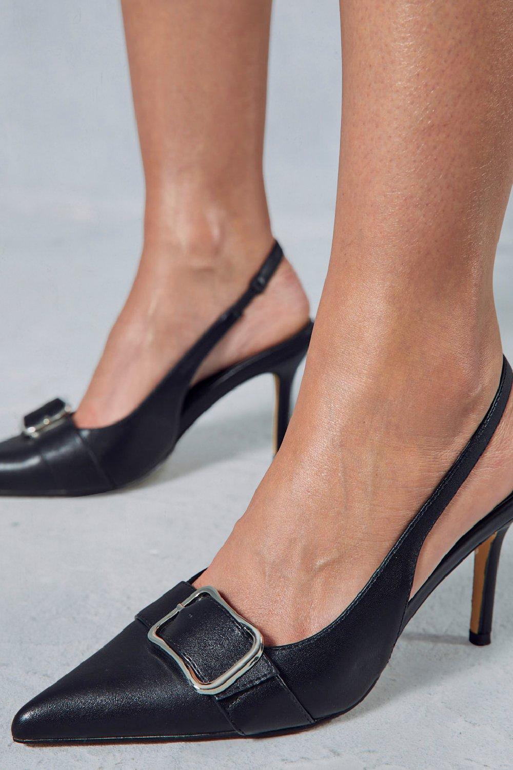 Misspap Leather Look Buckle Slingback Heels Boohoo UK