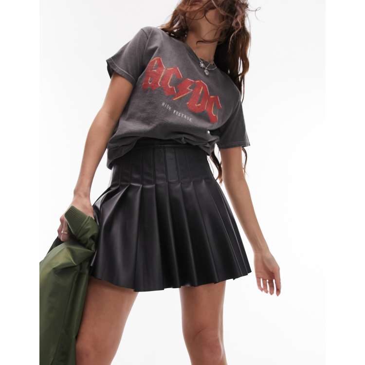 Topshop Black Faux Leather Pleated Skirt Atuendo Faldas