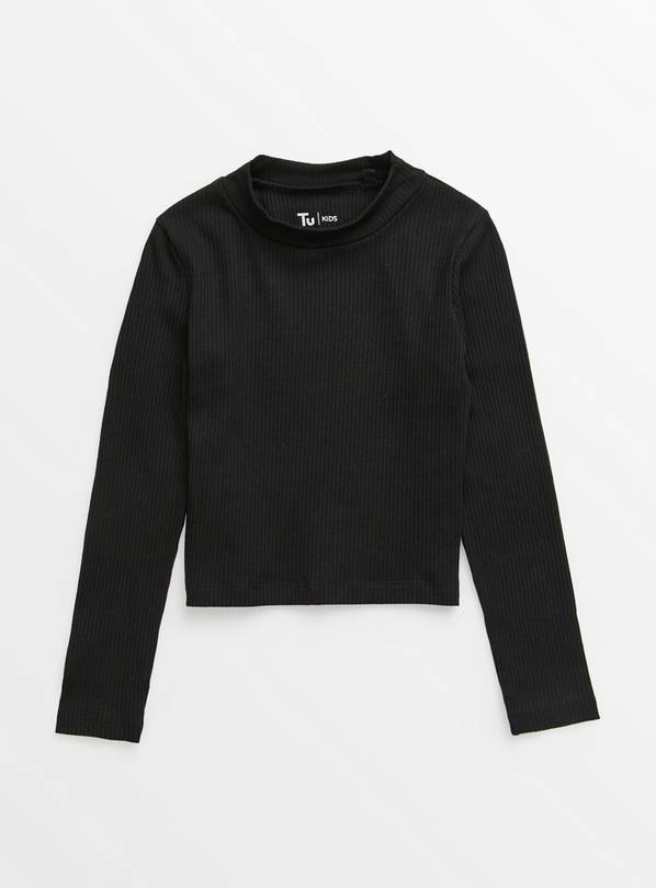Buy Black High Neck Long Sleeve Cropped Top 10 years Tops and