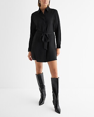 Black long sleeve shirt dress clearance, Collared Half Button Up Mini Portofino Shirt Dress Express clearance