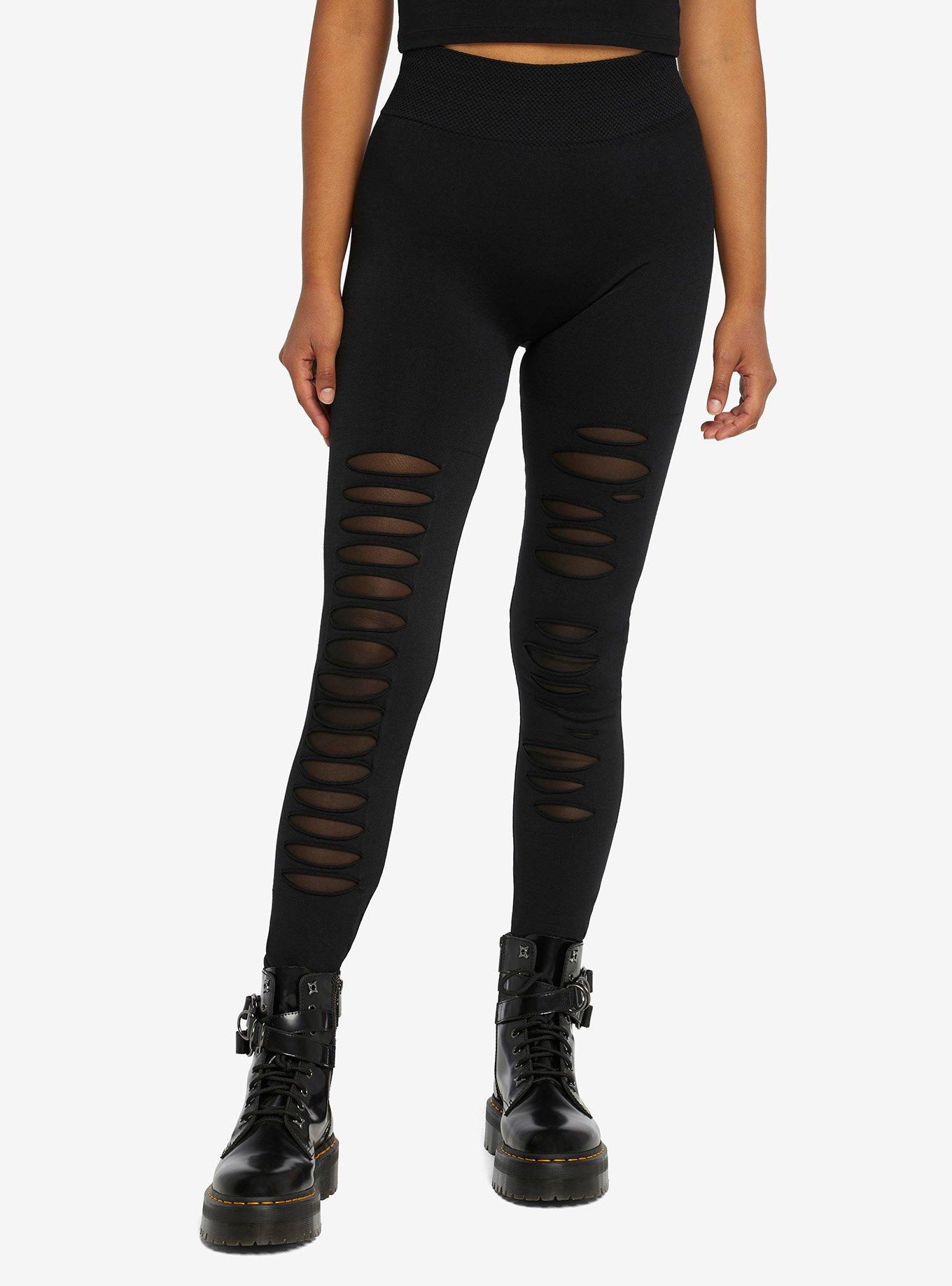 Black mesh inset shredded legging clearance, women s plus size gothic legging laces black ladies ripped clearance