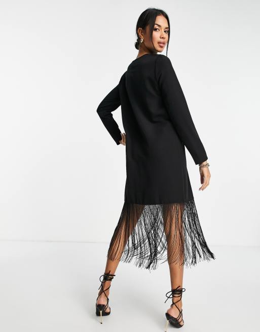 Vero Moda long sleeve midi dress with tassel hem in black ASOS