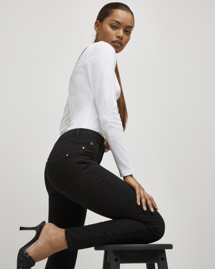 River Island Molly mid rise reform skinny jeans in black ASOS