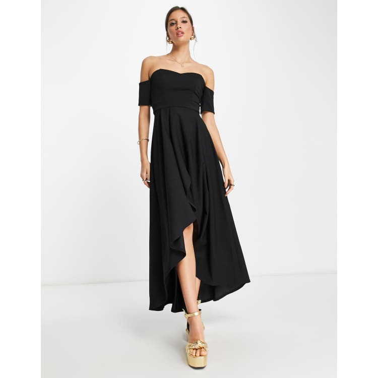 - black off the shoulder high low dress