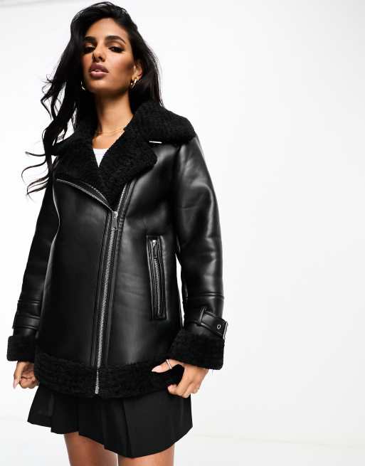 Black oversized aviator jacket clearance, Stradivarius oversized aviator jacket with borg lining in black clearance