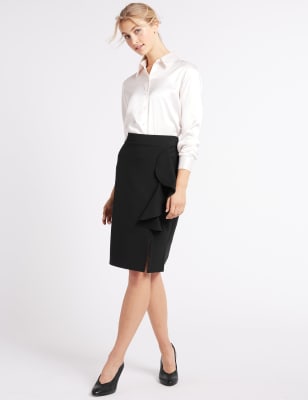 Black pencil skirt m&s clearance, Ruffle Front Split Pencil Midi Skirt M S Collection M S clearance