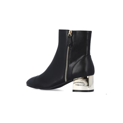 Black side zip ankle boots clearance, Black side zip block heel ankle boots River Island clearance