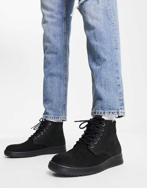 Men Black Suede Lace up Ankle Genuine Leather Boots Leather Skin