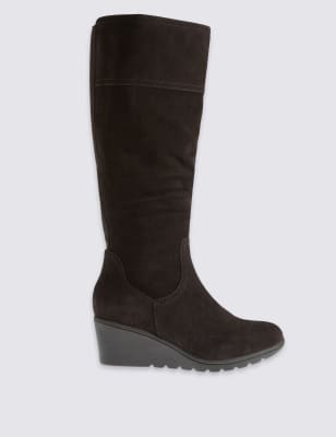 Suede Wedge Knee High Boots with Footglove Footglove M S