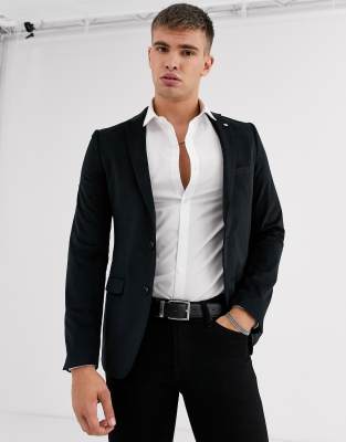 Black velvet jacket with jeans clearance, Avail London skinny suit jacket in black velvet ASOS clearance