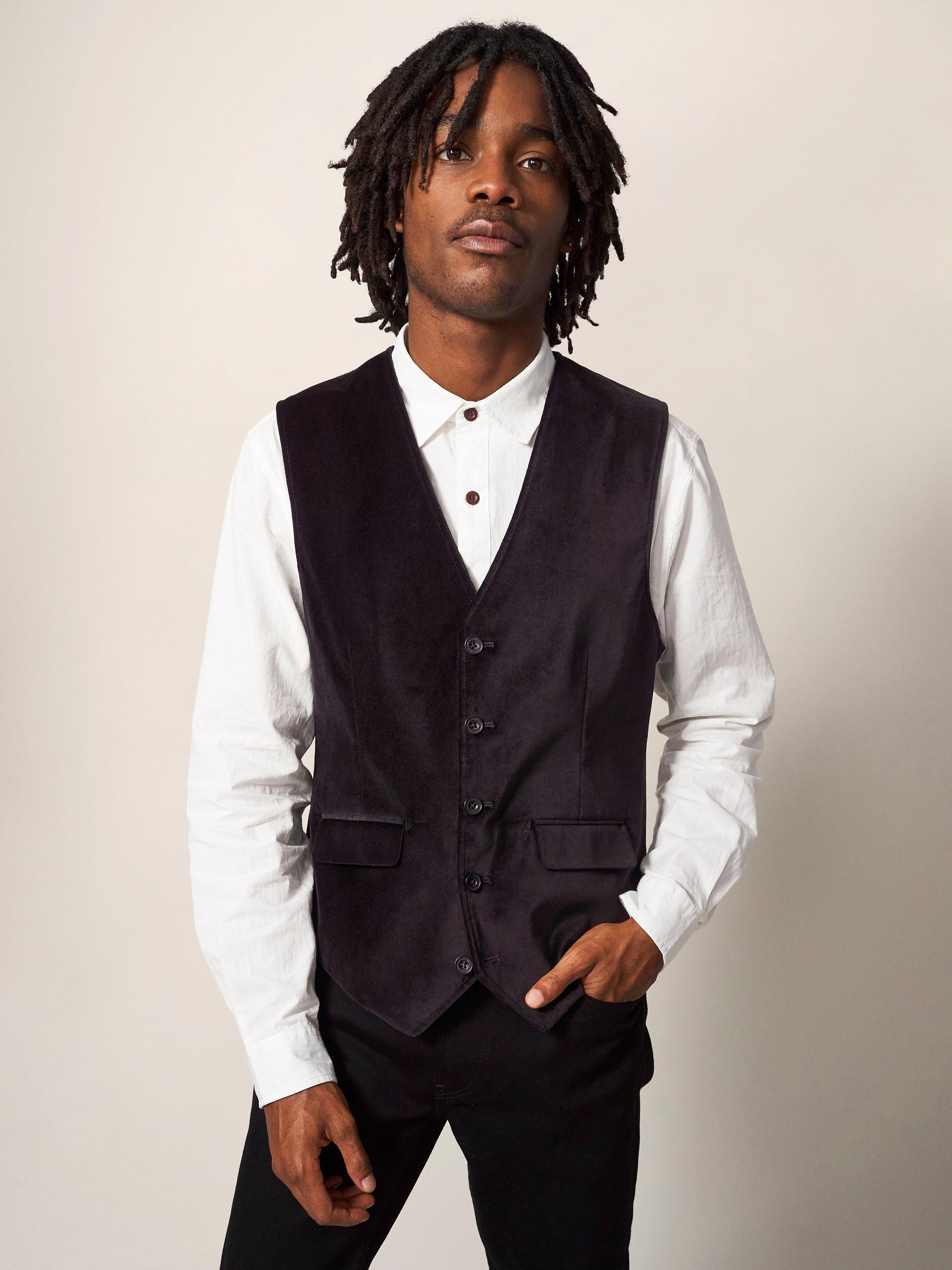 HUDSON Black Velvet Jacquard Waistcoat Marc Darcy