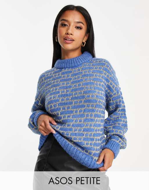 ASOS DESIGN Petite oversize sweater with metallic stitch in blue