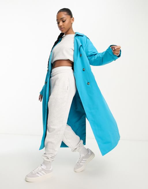 Vero Moda longline belted trench coat in blue