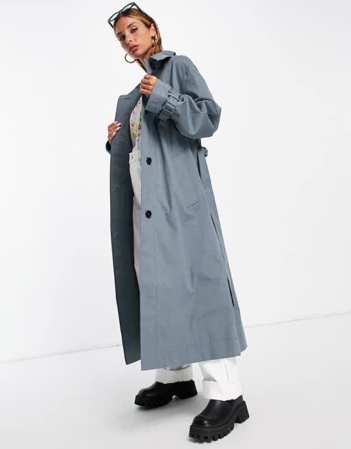 ASOS DESIGN sharp collar trench coat in blue ASOS