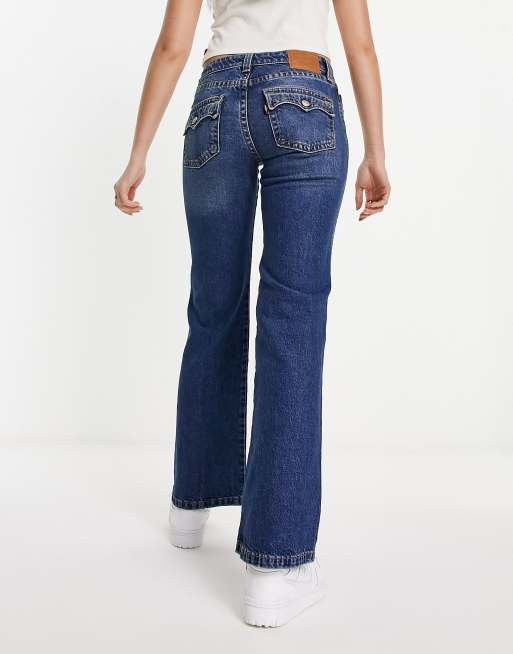 Levi s noughties boot cut distressed jeans in dark wash blue