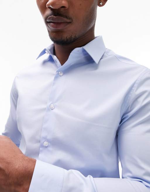 Topman long sleeve stretch skinny fit smart shirt in blue ASOS