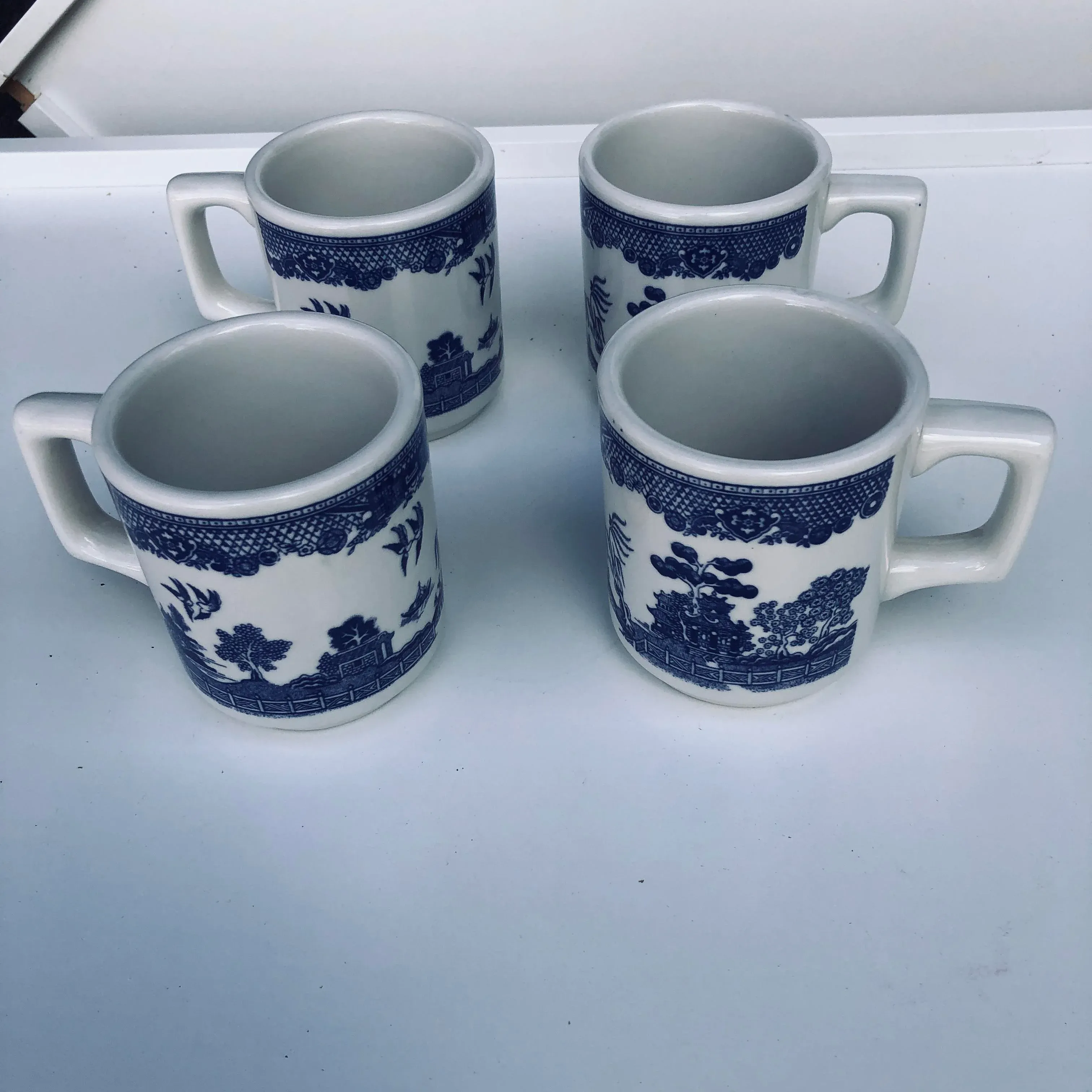 Vintage Buffalo China Blue Willow Coffee Tea Mugs S 4 Chairish