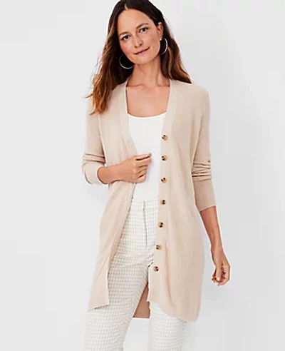 Ann Taylor Button Front Boyfriend Cardigan In Pearl Blush ModeSens