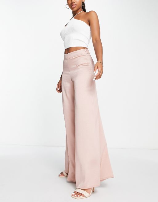 ASOS DESIGN wide leg satin trouser in blush pink ASOS
