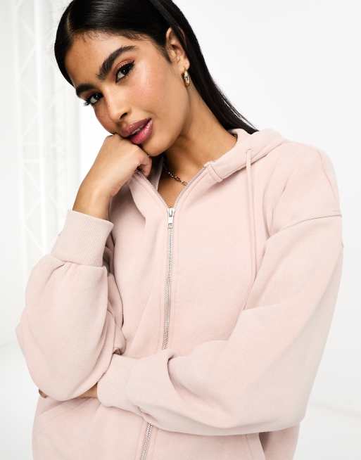 Buy Lipsy Blush Pink Embroidered Patch Velour Zip Up Hoodie from