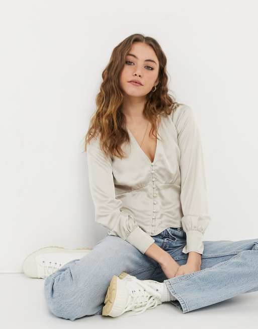 Abercrombie Fitch satin long sleeve blouse in champagne