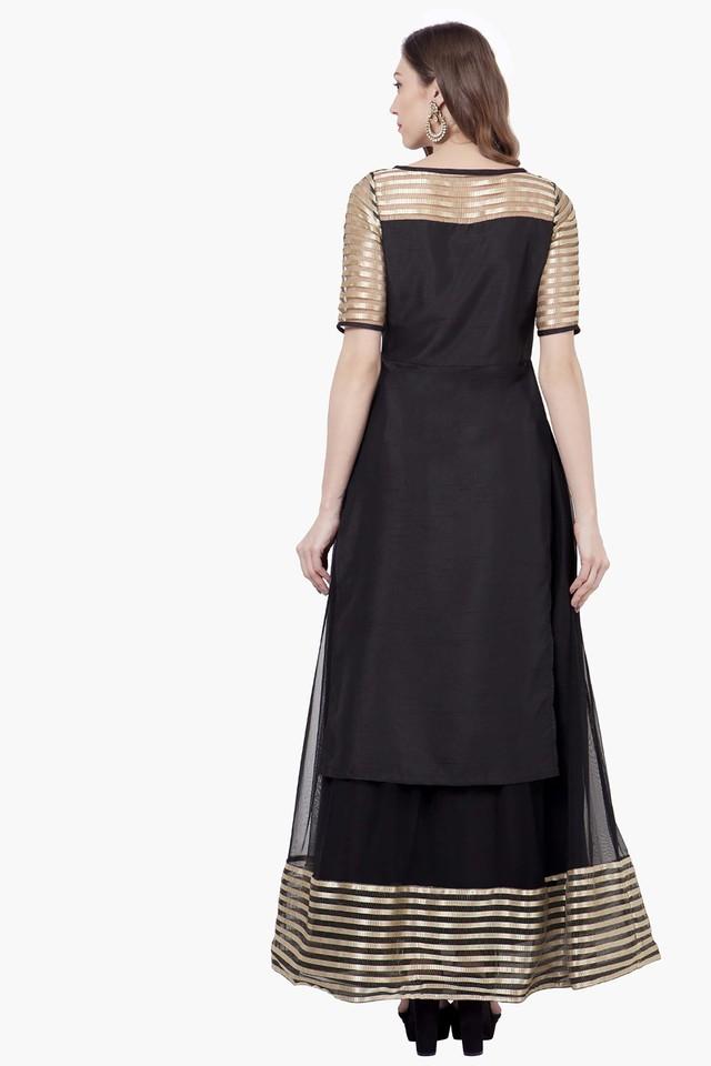 Maleeha Black Boat Neck Kurta with Elasticated Pant Set of 2