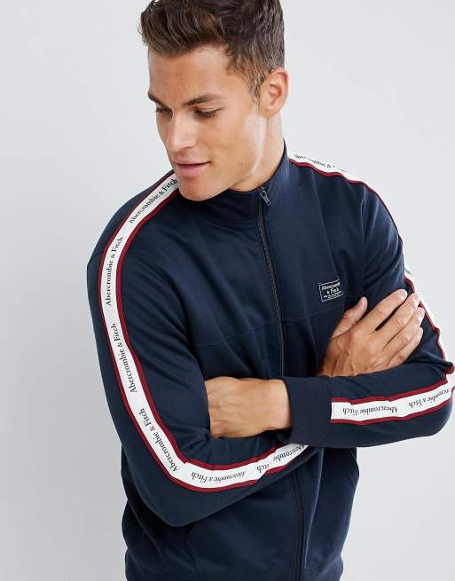 Abercrombie Fitch logo side tape tricot track jacket in navy