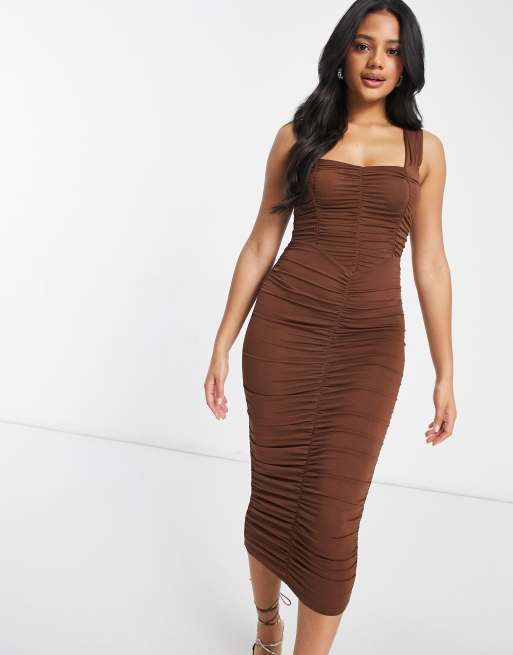ASOS DESIGN Gerafftes Midi Bodycon Kleid mit Herzausschnitt in