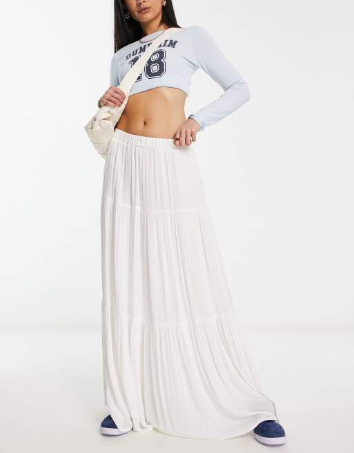 Boho white skirt clearance, Stradivarius tiered boho maxi skirt in white part of a set ASOS clearance