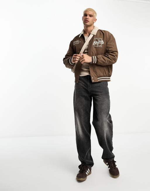 ASOS DESIGN varsity bomber jacket with contrast cord collar in