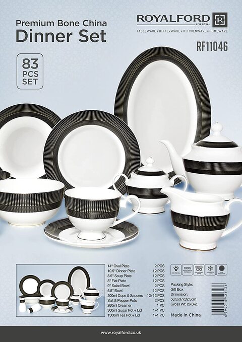 Buy Royalford Premium Bone China Dinner Set 83 Pcs Set RF11046