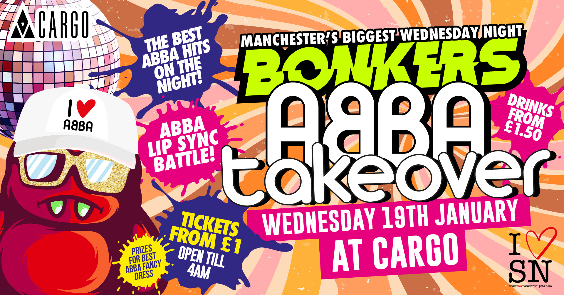 Bonkers fancy dress clearance, Bonkers ABBA Takeover at Cargo Drinks from 1.50 Lip Sync clearance