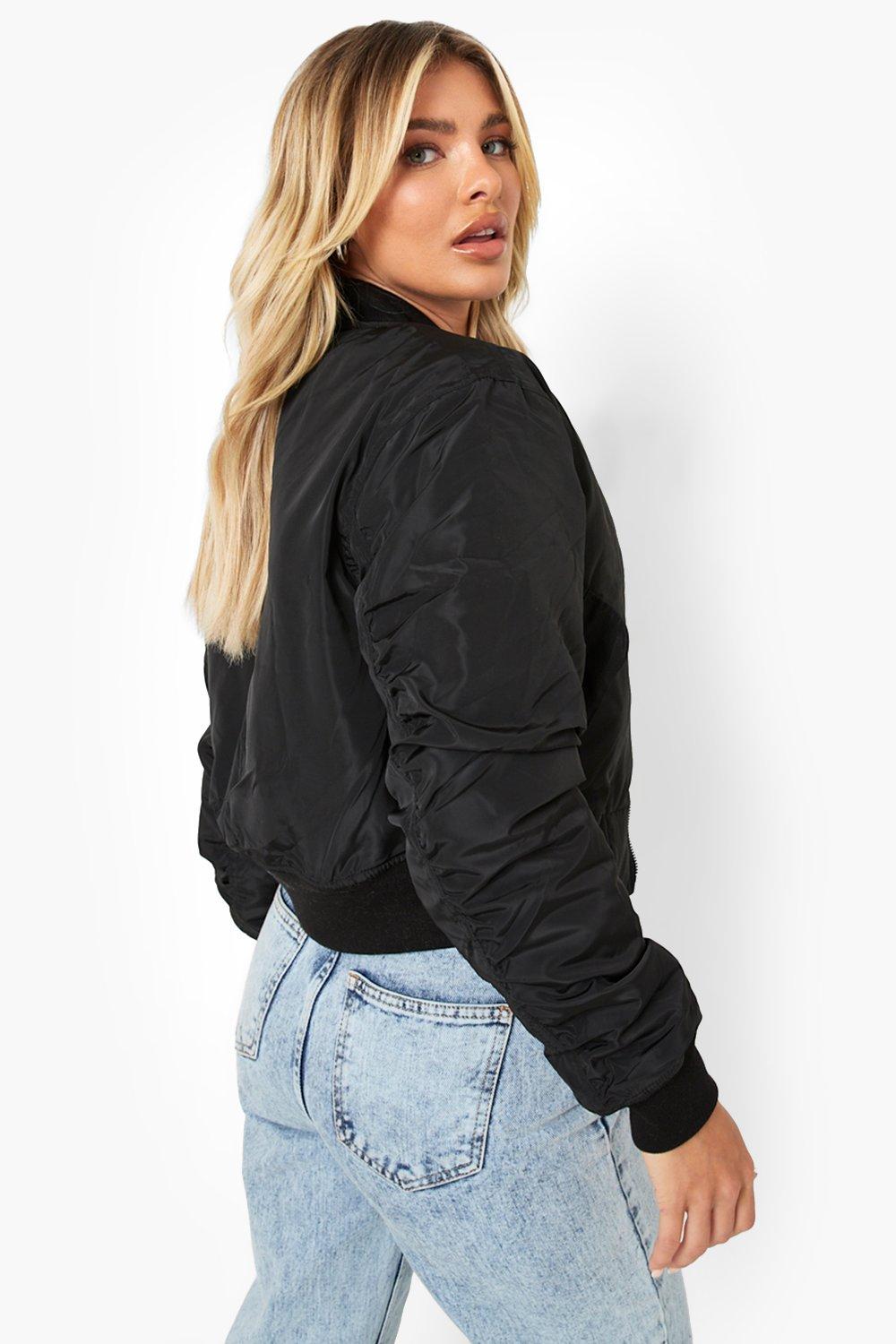 Boohoo black bomber jacket clearance, Women s Sleeve Detail Bomber Jacket Boohoo UK clearance