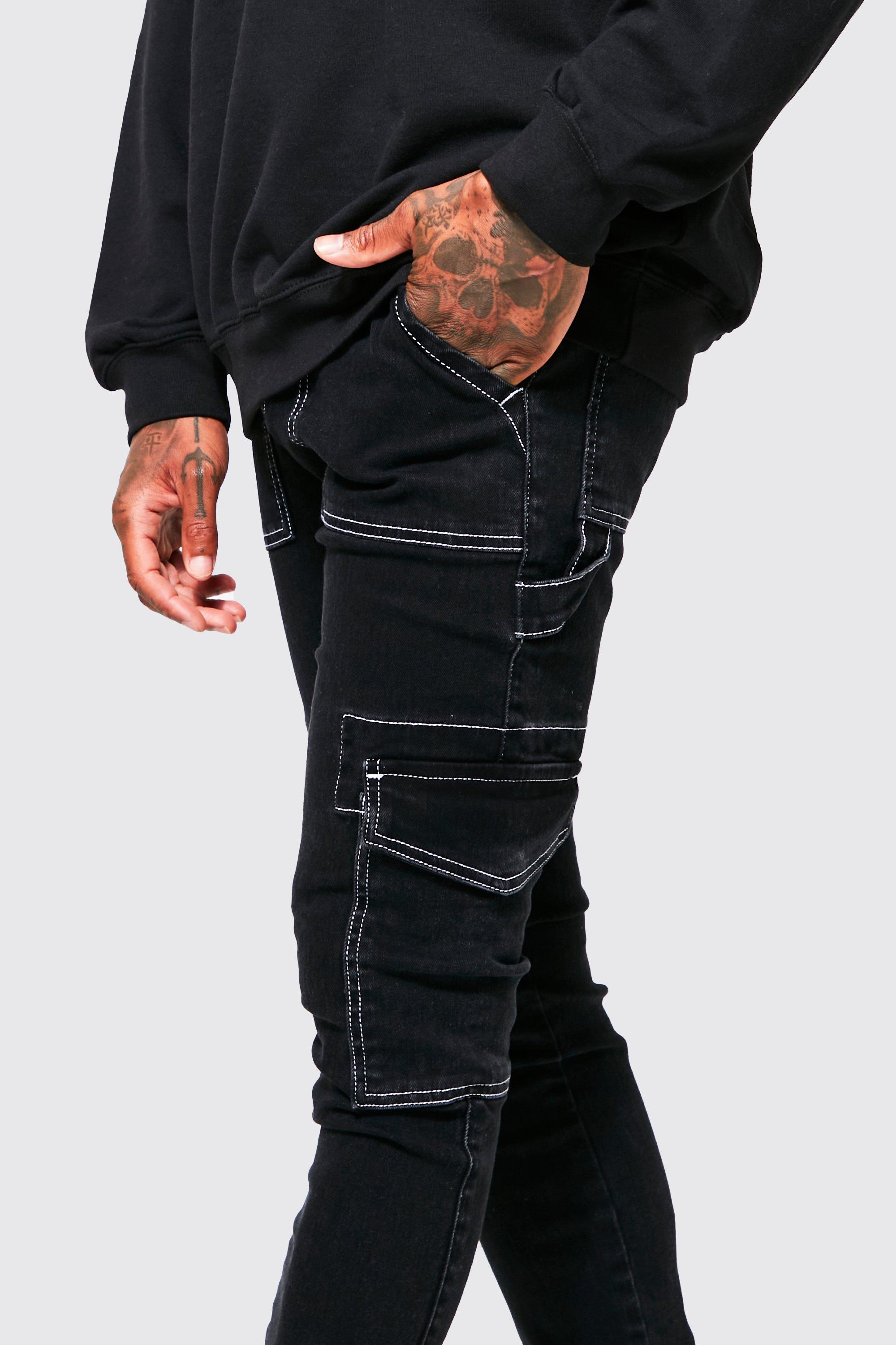Skinny Stretch Contrast Stitch Cargo Jeans boohoo