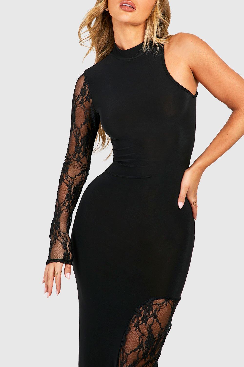 Women s Lace One Shoulder Midaxi Dress Boohoo UK