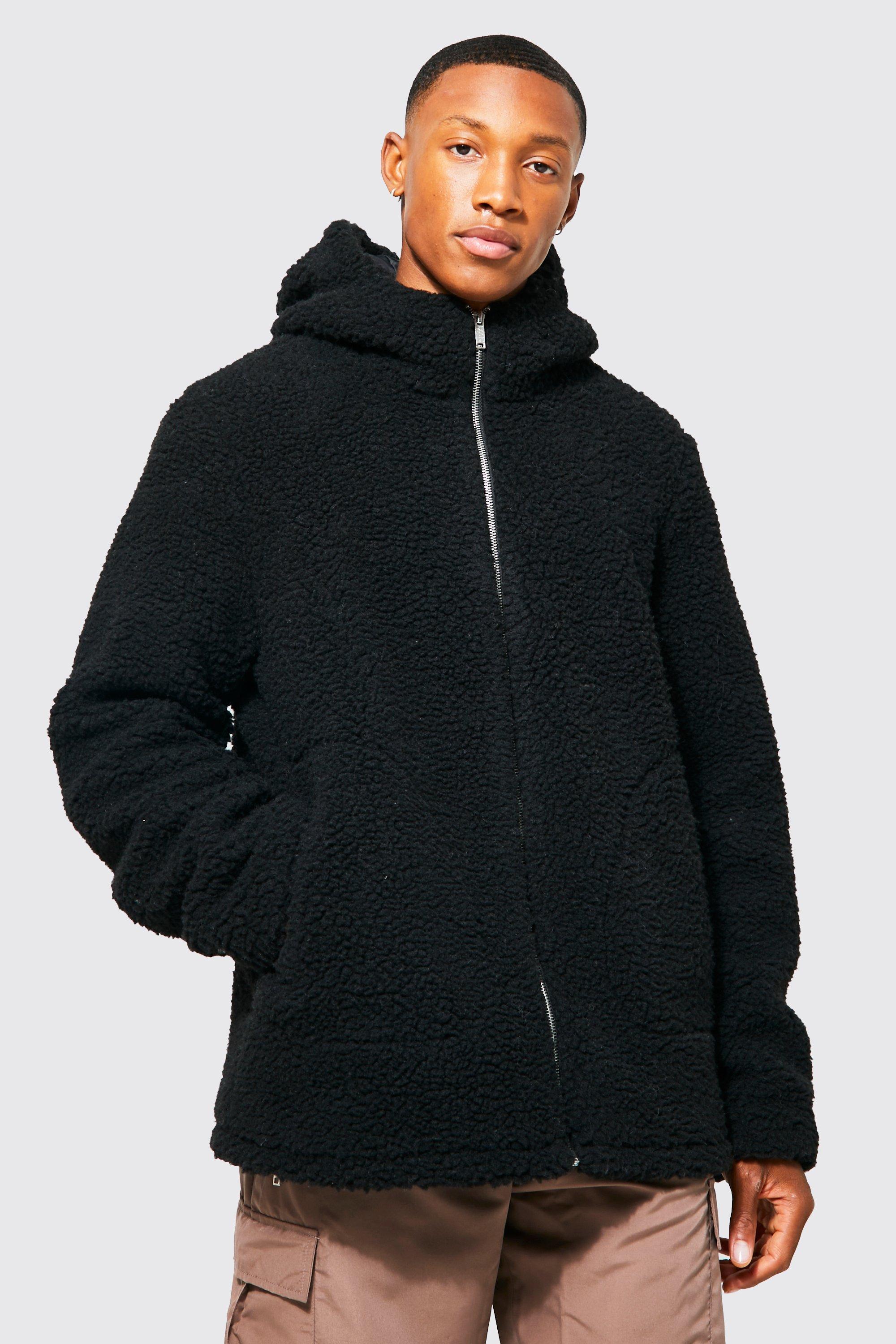 Boohoo borg jacket clearance, Borg Zip Through Hooded Jacket boohoo clearance