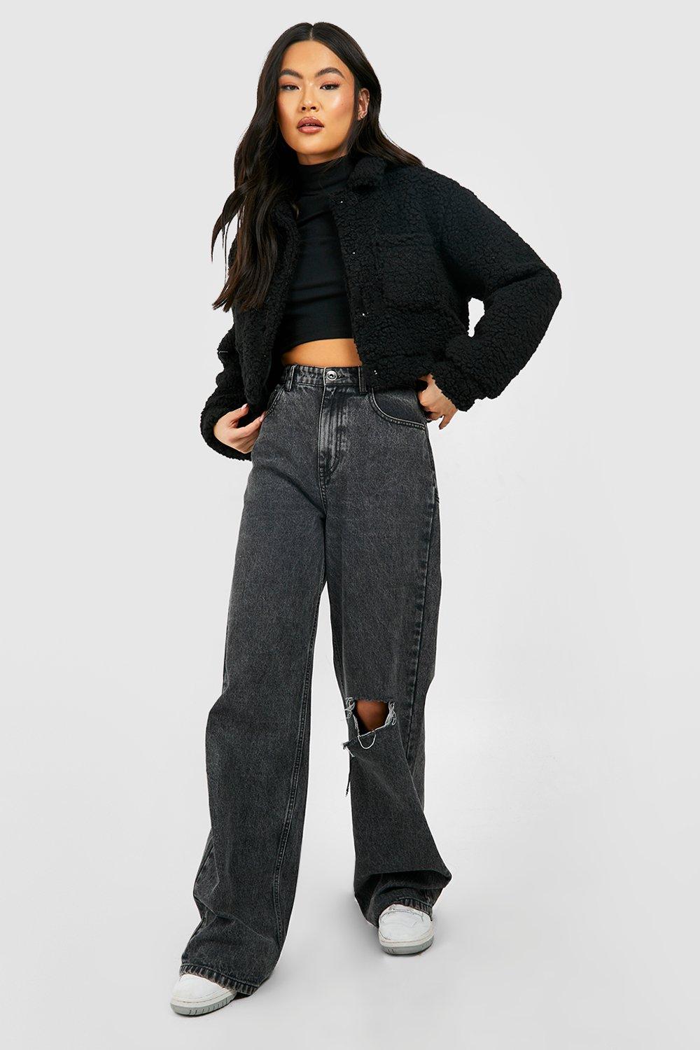 Boohoo cropped teddy jacket clearance, Women s Teddy Faux Fur Crop Jacket Boohoo UK clearance