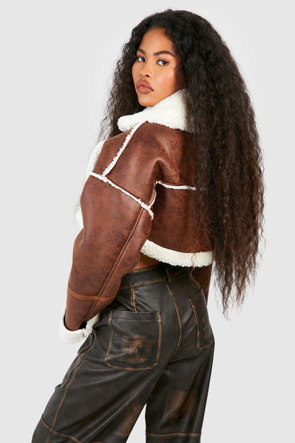 Women s Teddy Trim Cropped Aviator Jacket Boohoo UK