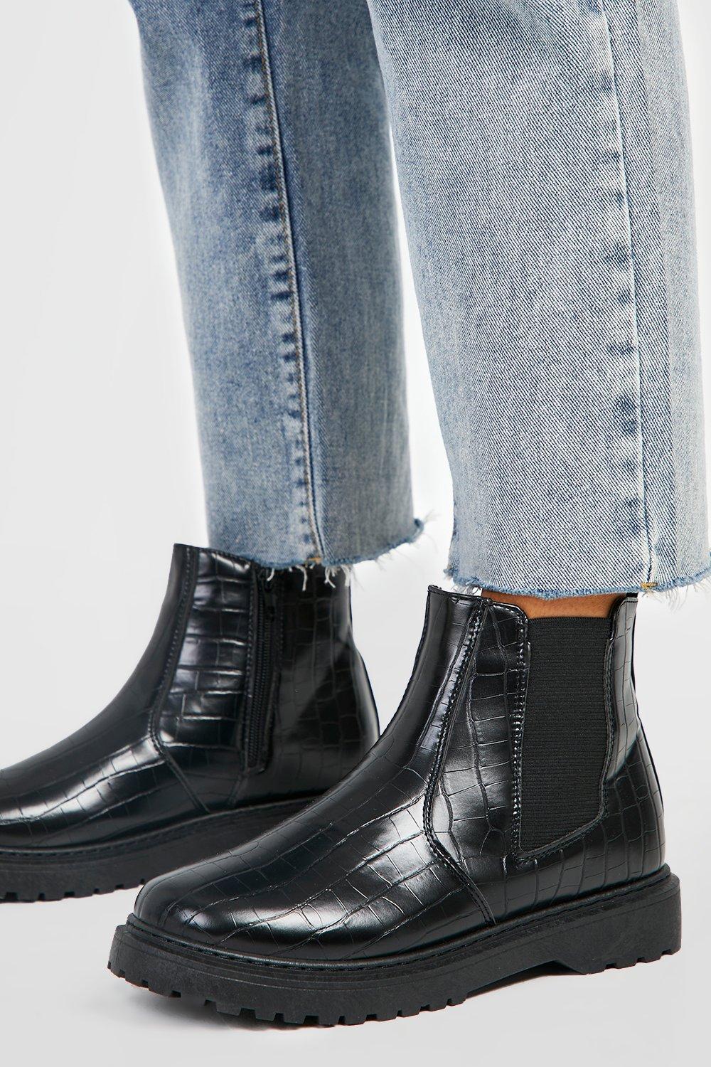 Tab Detail Flat Croc Chelsea Boots Boohoo UK