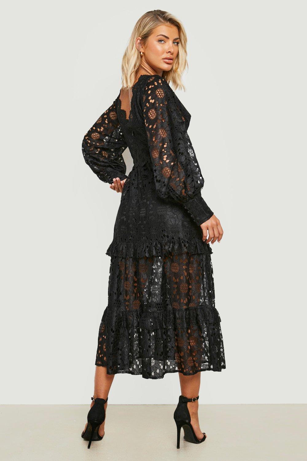 Women s Boutique Crochet Lace Tiered Midaxi Dress Boohoo UK