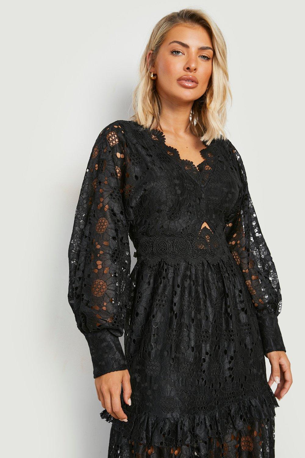 Boohoo embroidered mesh tiered lace dress clearance, Women s Plus Occasion Lace Tiered Midaxi Dress Boohoo UK clearance