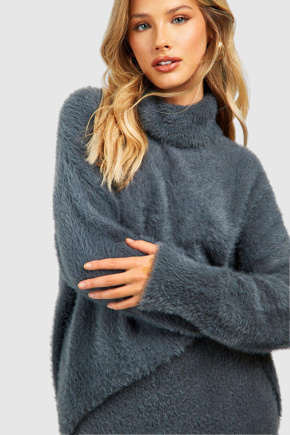 Boohoo fluffy jumper clearance, Women s Fluffy Roll Neck Longline Jumper Boohoo UK clearance