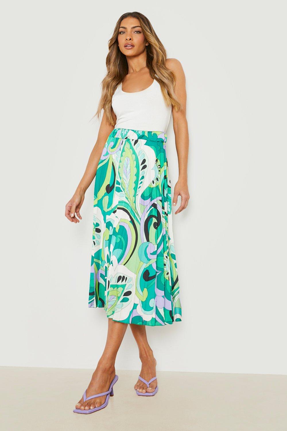 Women s Abstract Print Satin Pleated Midi Skirt Boohoo UK