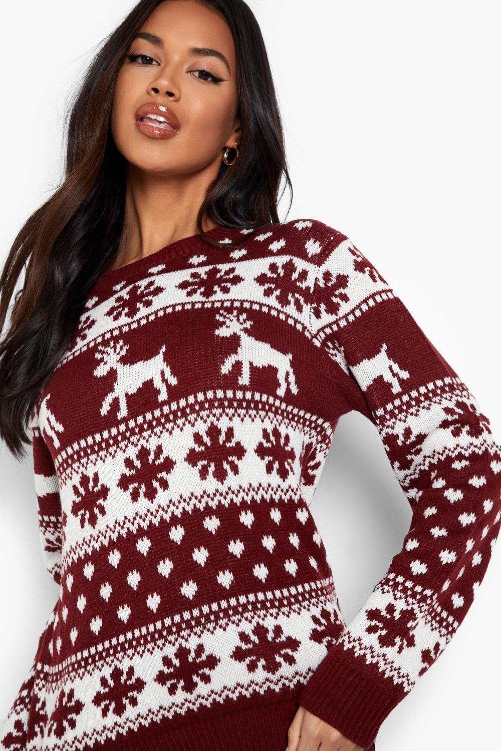Women s Reindeer Snowflake Christmas Jumper Boohoo UK
