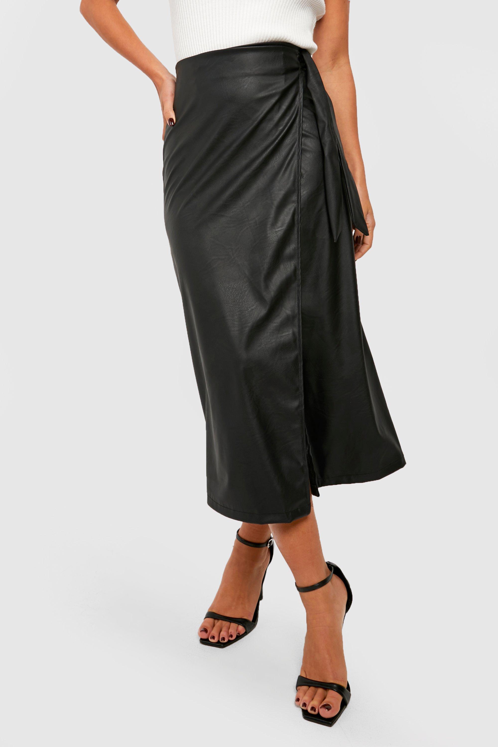 Boohoo leather skirt clearance, Leather Look Wrap Midaxi Skirt boohoo clearance