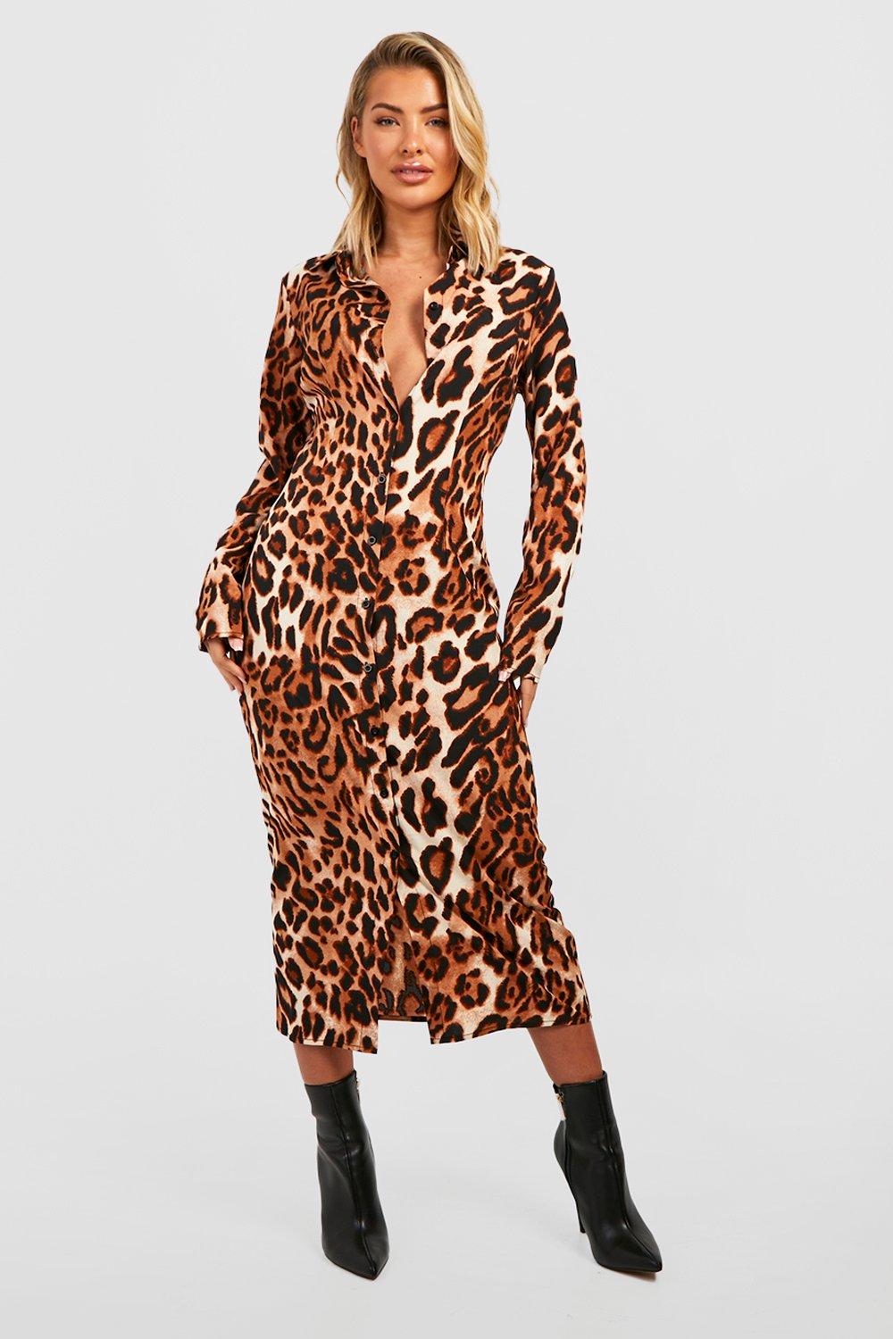 Boohoo leopard print shirt dress clearance